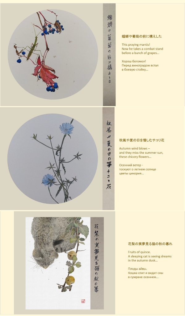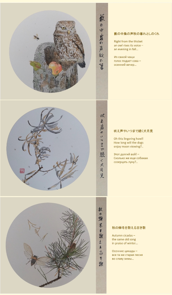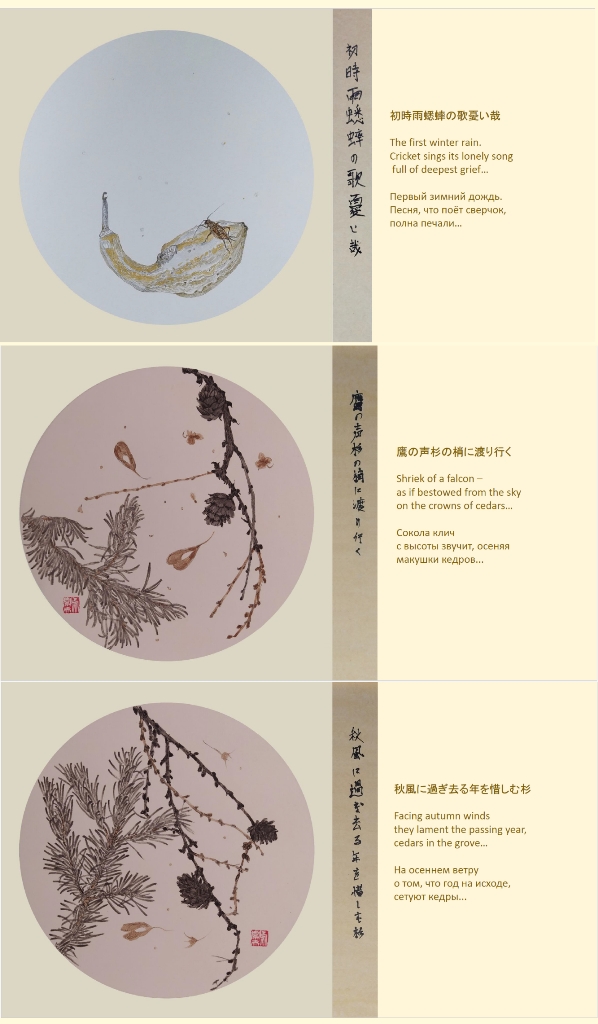 Мы продолжаем публикацию фрагментов из сборника авторских хайку Александра Долина на японском языке «Последний сверчок» с переводом на русский и английский Иллюстрации к стихам Олега Усова. Предлагаем вниманию читателей цикл «Осень».