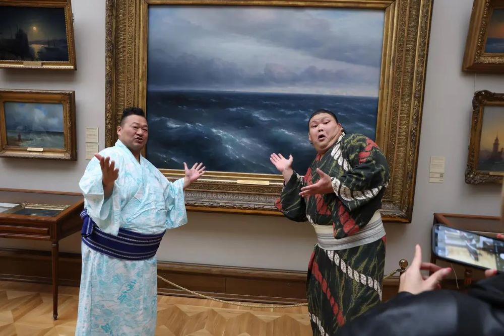 Оба сумоиста – Дайки Тоёносима и Масахиро Дайхико – впервые приехали в Москву, чтобы дать мастер-классы и выступить на выставке японской культуры HINODE JAPAN, которая пройдёт в Москве в эти выходные. Но прежде чем показать москвичам, что такое настоящее сумо, им предстояло окунуться в нашу культуру с головой и для начала – ознакомиться с русской живописью.