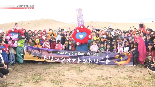 NHK World. На западе Японии в преддверии Хэллоуина состоялся парад, в ходе которого люди в костюмах прошли по песчаным дюнам.