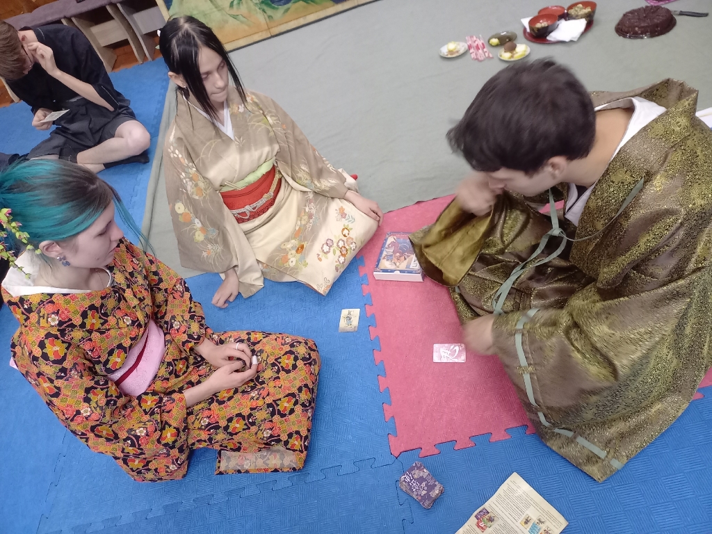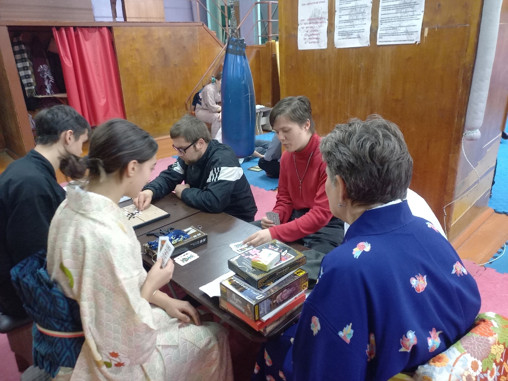 После чаепития гости смогли познакомиться с правилами японских игр и сыграть в некоторых из них. Особый интерес вызвала колода карт тэнсё карута, напечатанная по единственным сохранившимся печатным блокам XVI века и хранящимся в музее города Кобэ.