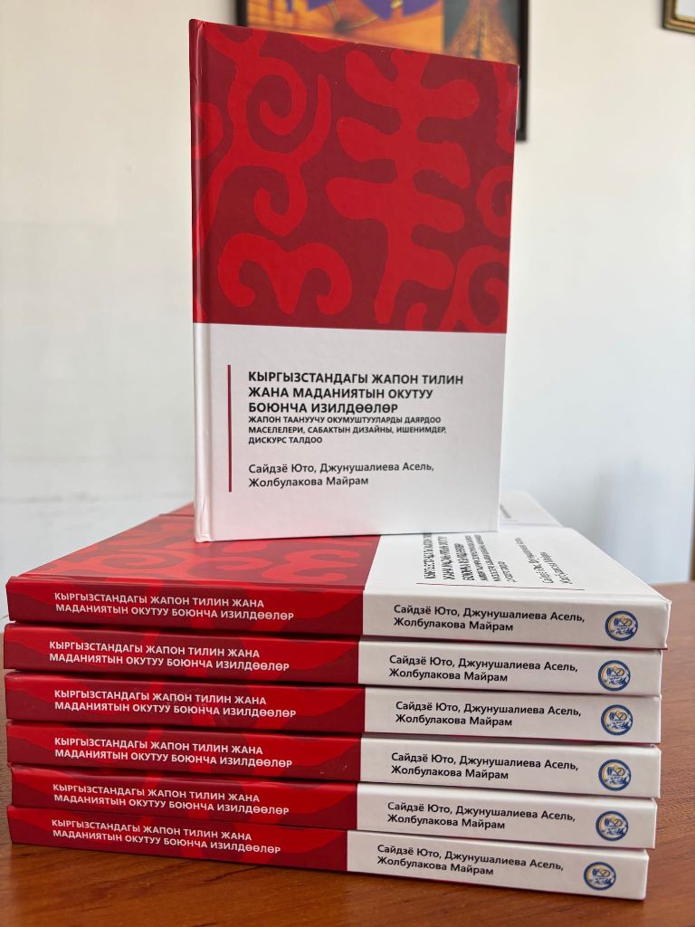 Издание носит название:«Кыргызстандагы жапон тилин жана маданиятын окутуу боюнча изилдөөлөр: Жапон таануучу окумуштууларды даярдоо маселелери, сабактын дизайны, ишенимдер, дискурс талдоо»(ISBN: 978-9967-9626-4-4).