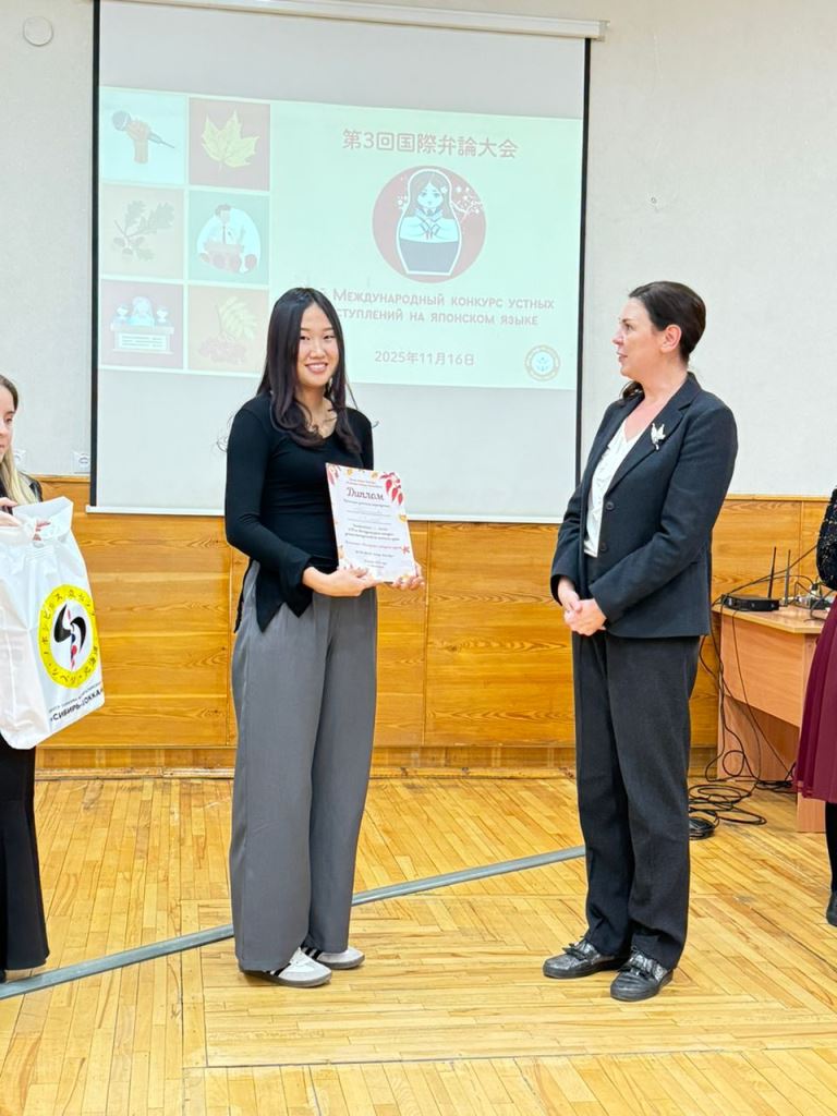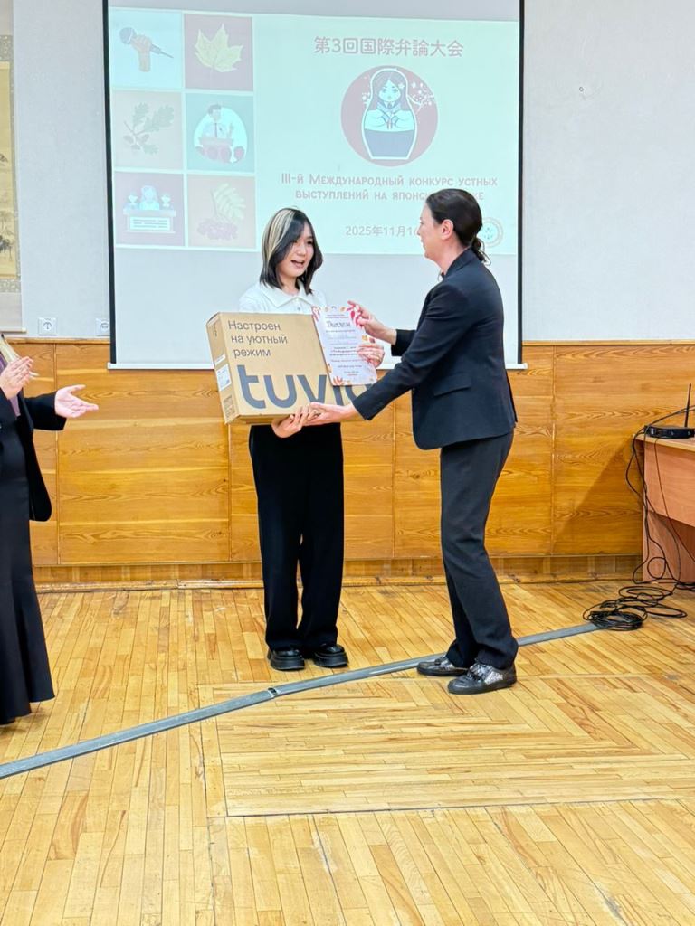 В г. Новосибирск 17 ноября 2025 года состоялся «III-й Международный конкурс устных выступлений на японском языке». Организаторами конкурса были: МАУК Центр туризма и побратимских связей «Сибирь-Хоккайдо», Ассоциация «Саппоро — Новосибирск» и Японский Фонд. Целью данного конкурса является продвижение культурного разнообразия и межкультурного диалога в среде школьников и молодежи, развитие добрососедских международных отношений по линии народной дипломатии. Участники из Кыргызстана принимают участие в данном конкурсе уже в третий раз. В этом году Кыргызстан представляли студенты ведущих ВУЗов Кыргызстана, такие как: БГУ им.К.Карасаева, Институт Японоведения при КГУ им.И.Арабаева и Институт Японоведения при КНУ им.Ж.Баласагына.