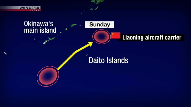 Позднее министерство опубликовало дополнительную информацию о том, что в воскресенье «Ляонин» проследовал на северо-восток между главным островом Окинава и островом Минами Дайтодзима, входящим в группу островов Дайто.