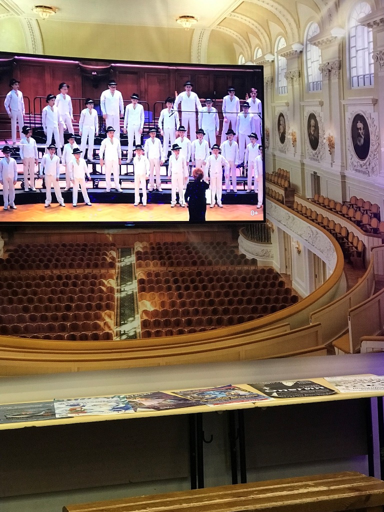 И была чудесная премьера – Аве Мария от немецкого композитора Франца Ксавера Библа. Большинство его произведений написаны для хоровых ансамблей. Ее исполнили два хора юношей — на сцене и на балконе. Солист был невидим, он как бы парил над залом. Волшебно звучал его голос, обращенный к Пречистой Деве, хор мощно подхватывал посыл, ширил и возносил к небу ровно чистой слезой омытую молитву.