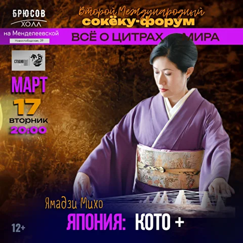 Санкёку — «музыка трёх»: цитра кото, лютня сямисэн и флейта сякухати. История японской тринадцатиструнной цитры кото уходит корнями в глубь веков, когда она была завезена из Китая в VIII столетии. На концерте кото вступит в диалог с другими традиционными японскими инструментами – лютней сямисэном и флейтой сякухати. Эти инструменты также объединятся в «санкёку», что буквально означает «музыка для трёх инструментов».