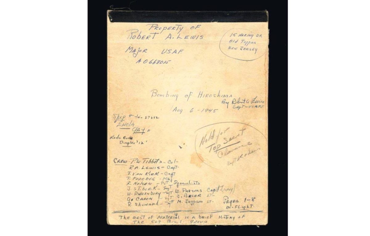 Блокнот с записями Роберта Льюиса, которые он сделал во время и после бомбардировки, был выставлен на продажу торговцем редкими книгами в Калифорнии Дэном Уитмором