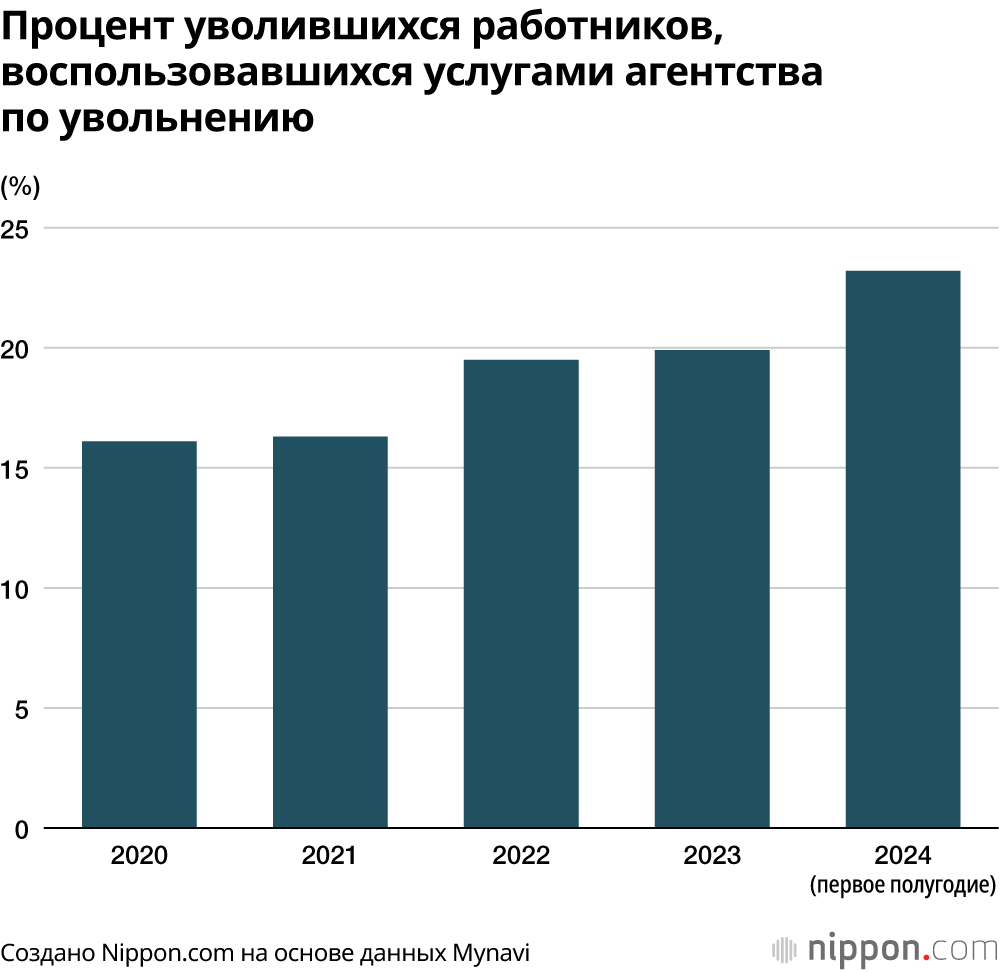 Японские работники всё чаще прибегают к услугам специализированных агентств по увольнению. Эти посредники берут на себя ведение всех бюрократических процедур в тех случаях, когда руководство компании неохотно расстается с сотрудниками или намеренно чинит препятствия их уходу.