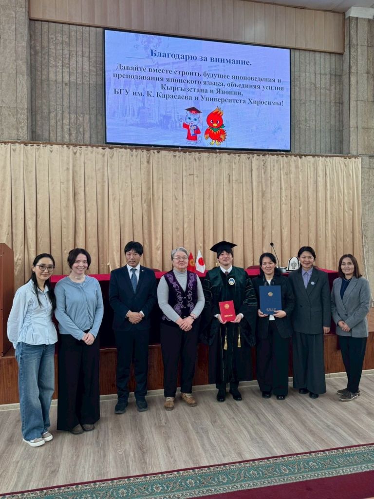 Бишкекский государственный университет имени К. Карасаева присвоил звание почётного профессора доценту университета Хиросимы (г. Хиросима, Япония) Юто Сайдзё в знак признания его многолетнего и последовательного вклада в развитие преподавания японского языка и японской культуры, а также в укрепление академического сотрудничества между Кыргызской Республикой и Японией.