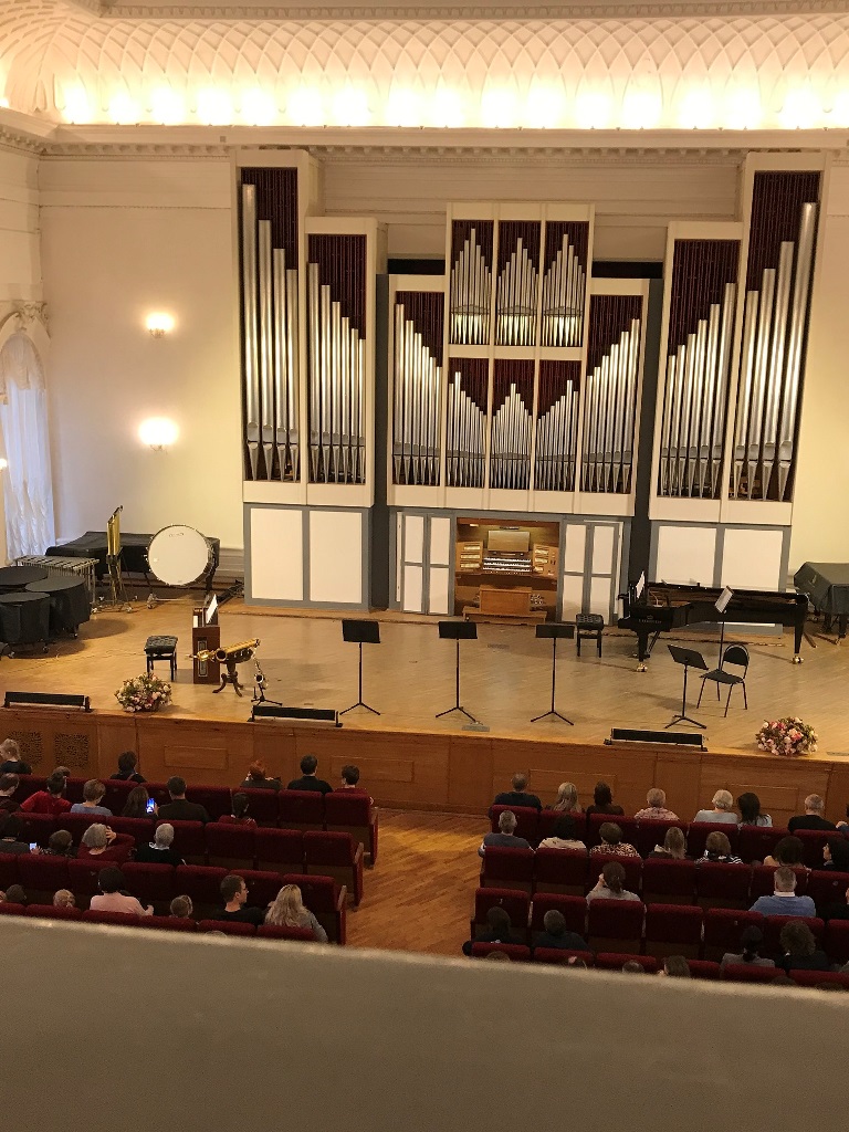 Уже сто лет не слышала любимый ансамбль старинной музыки «Трио-соната» – уникальный коллектив европейского уровня. Да еще в полном составе, вместе с Людмилой Домбровски, прекрасной виолончелисткой, которая далеко не каждый раз присоединяется к ансамблю. А тут фонд «Новая музыка» (руководитель Юрий Ходоров) собрал вообще всех: нашу японскую гостью Хироко Иноуэ, ансамбль Владимира Скляренко и его учеников-гобоистов. Лауреата Всероссийских конкурсов одаренного Матвея Левина и еще совсем маленького, но уже умеющего хорошо держаться на сцене Дмитрия Бута. А еще Володя, как обычно, нашел изюминку для концерта: привлек к участию великолепную саксофонистку, очень артистичную, лауреата Всероссийских и Международных конкурсов Анну Калихман. И большая радость, что он сам вел концерт, даря нас своими энциклопедическими знаниями по истории музыки, поданными с подкупающей простотой и изящным юмором.