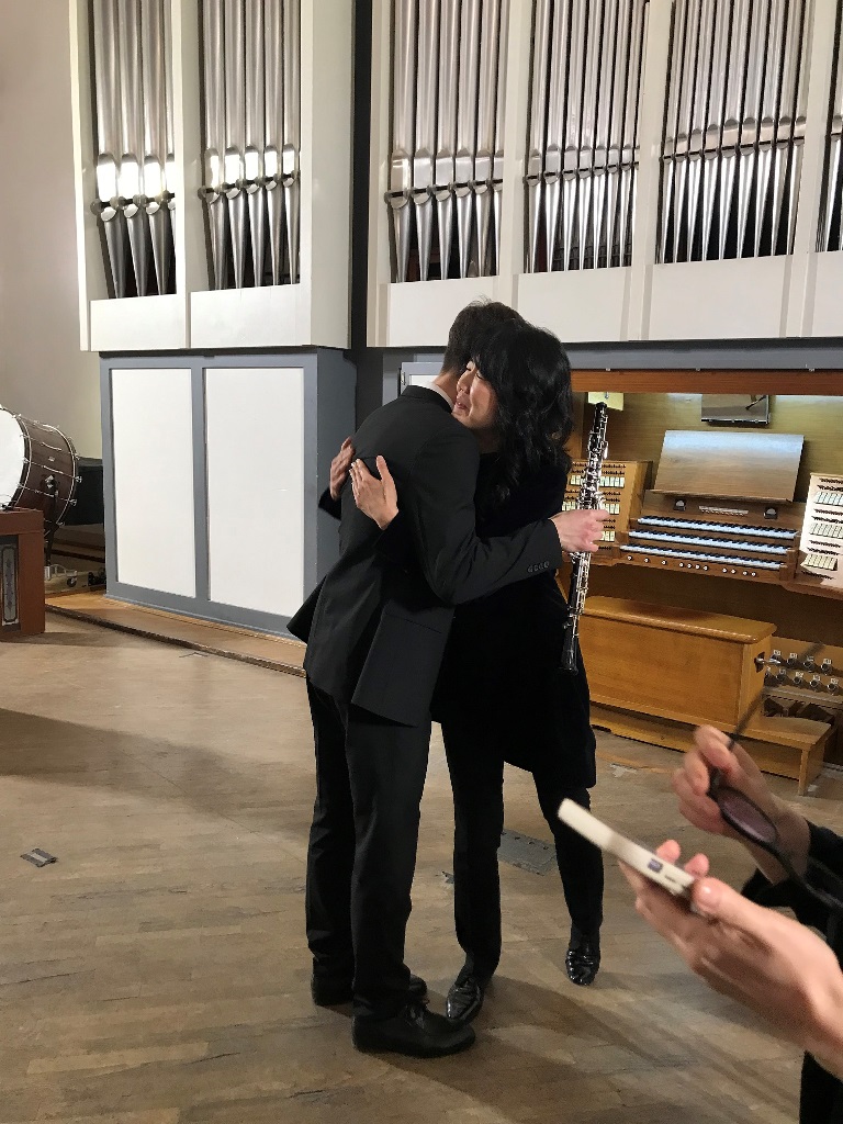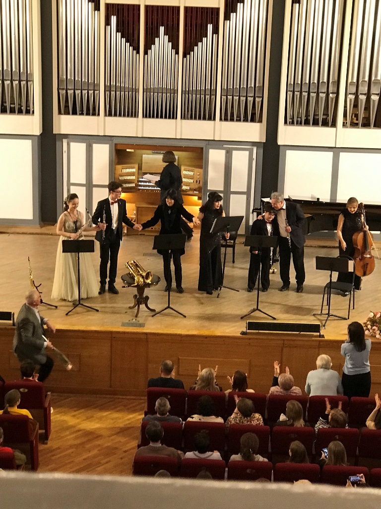 Концерт был просто изумительный: как по составу, так и исполнению. Хироко практически не уходила со сцены, являя полную гармонию игры со всеми: клавесин и рояль лауреата Международного конкурса Елены Лельчук, виолончель Людмилы Домбровски, гобой лауреата Всероссийского, Всесоюзного и Международного конкурса Владимира Скляренко, еще два гобоя и три сакса универсальной Анны Калихман.